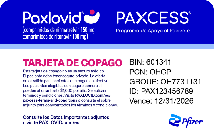 Es posible que aún reúna los requisitos para PAXLOVID sin cargo,* o que reúna los requisitos para otros programas.† Visite PAXCESSpatientportal.com para obtener más información o llame al 1-877-C19-PACK (1-877-219-7225) para conocer qué opciones pueden estar disponibles para usted.